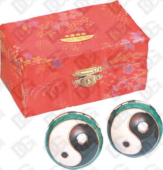 Boules de santé ‘musicales’, appelées aussi boules de qi-gong, à faire tourner dans la main pour se relaxer. Livrées sous coffret chinois.