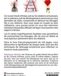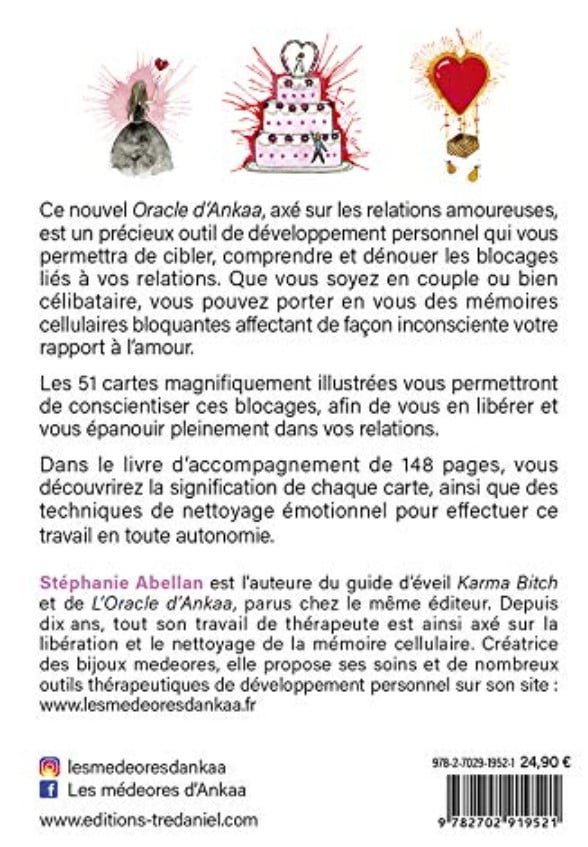 L’Oracle d’Ankaa, axé sur les relations amoureuses, est un précieux outil de développement personnel qui vous permettra de cibler, comprendre et dénouer les blocages liés à vos relations. Que vous soyez en couple ou bien célibataire, vous pouvez porter en vous des mémoires cellulaires bloquantes affectant de façon inconsciente votre rapport à l’amour.