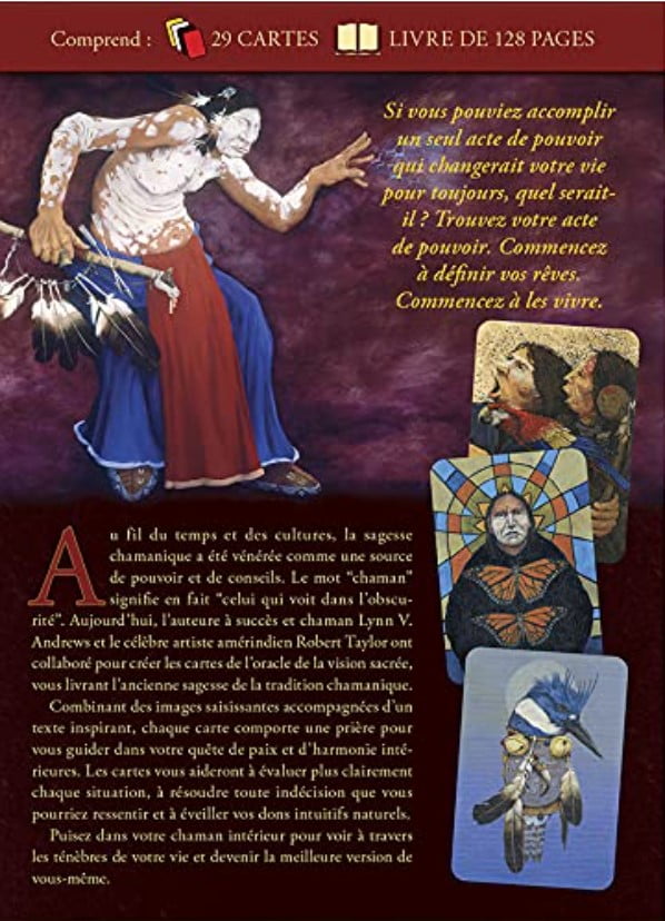 Aujourd’hui, l’auteure à succès et chaman Lynn V. Andrews et le célèbre artiste amérindien Robert Taylor ont collaboré pour créer les cartes de l’Oracle de la vision sacrée, vous livrant l’ancienne sagesse de la tradition chamanique. Combinant des images saisissantes accompagnées d’un texte inspirant, chaque carte comporte une prière pour vous guider dans votre quête de paix et d’harmonie intérieures.