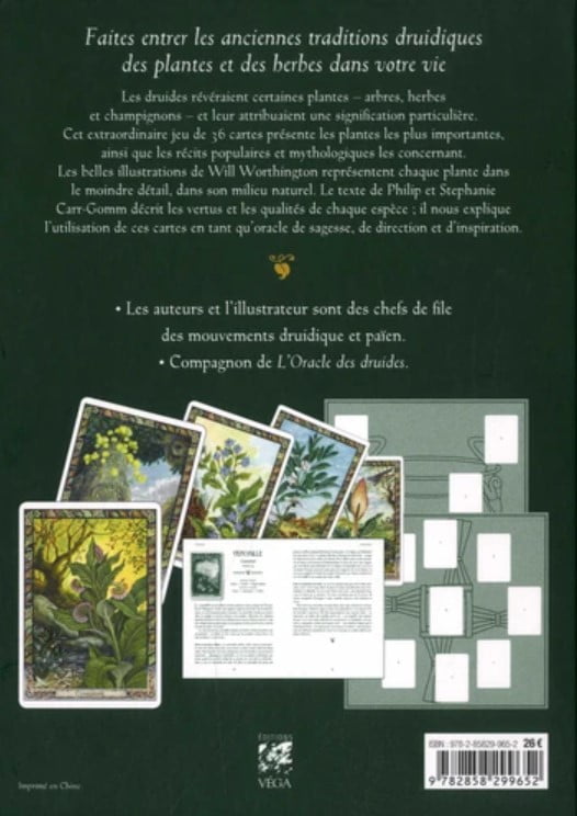 - Philip & Stéphanie Carr-Gomm, L’Oracle Druidique des Plantes, Editions VEGA, 2021, 80p.