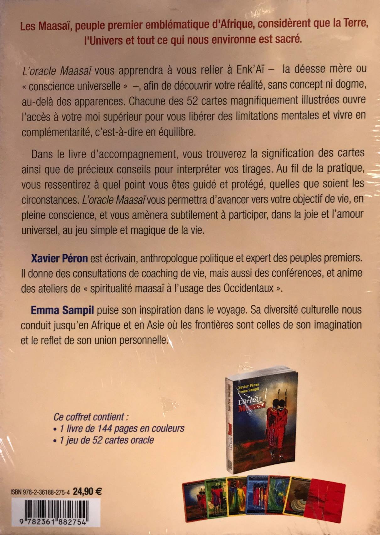 L’oracle Maasaï vous apprendra à vous relier à Enk’Aï – la Déesse mère ou« Conscience Universelle » –, afin de découvrir votre réalité, sans concept ni dogme, au-delà des apparences. Chacune des 52 cartes magnifiquement illustrées ouvre l’accès à votre moi supérieur pour vous libérer des limitations mentales et vivre en complémentarité, c’est-à-dire en équilibre.