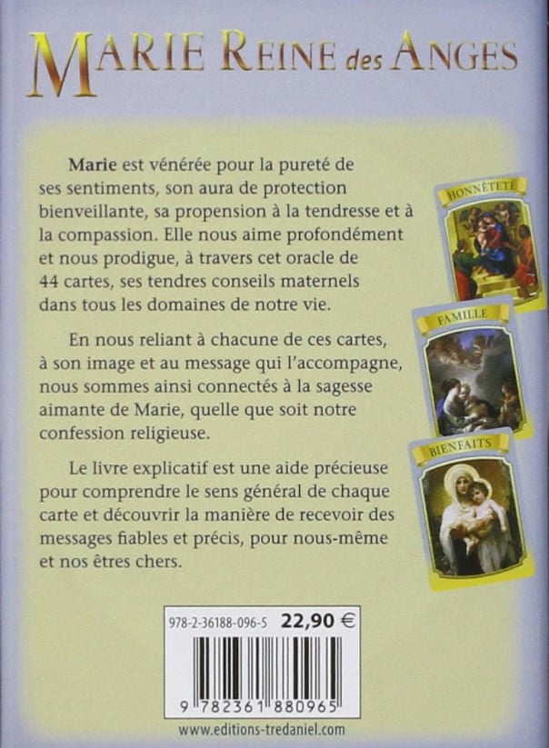 En nous reliant à chacune de ces cartes, à son image et au message qui l’accompagne, nous sommes ainsi connectés à la sagesse aimante de Marie, quelle que soit notre confession religieuse.
