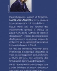 Marie Lise Labonté nous guide dans ce cheminement, en apportant des clés de compréhension à nos bouleversements intérieurs. Elle nous transmet des outils, mis en oeuvre avec ses patients et inspirés de la nuit noire qu’elle a elle-même traversée.
